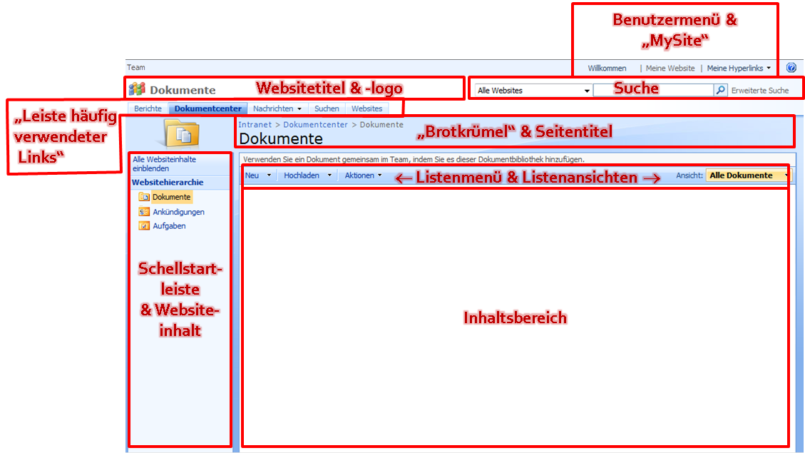 Überblick: Aufbau der Benutzeroberfläche in SharePoint 2007/WSS3.0
