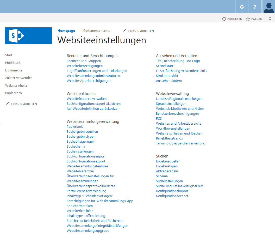 Websites, die Teil einer gemeinsamen Websitesammlung sind, können über die Sammlung gemeinsame Einstellungen und Infrastrukturen erhalten. Das betrifft insbesondere: